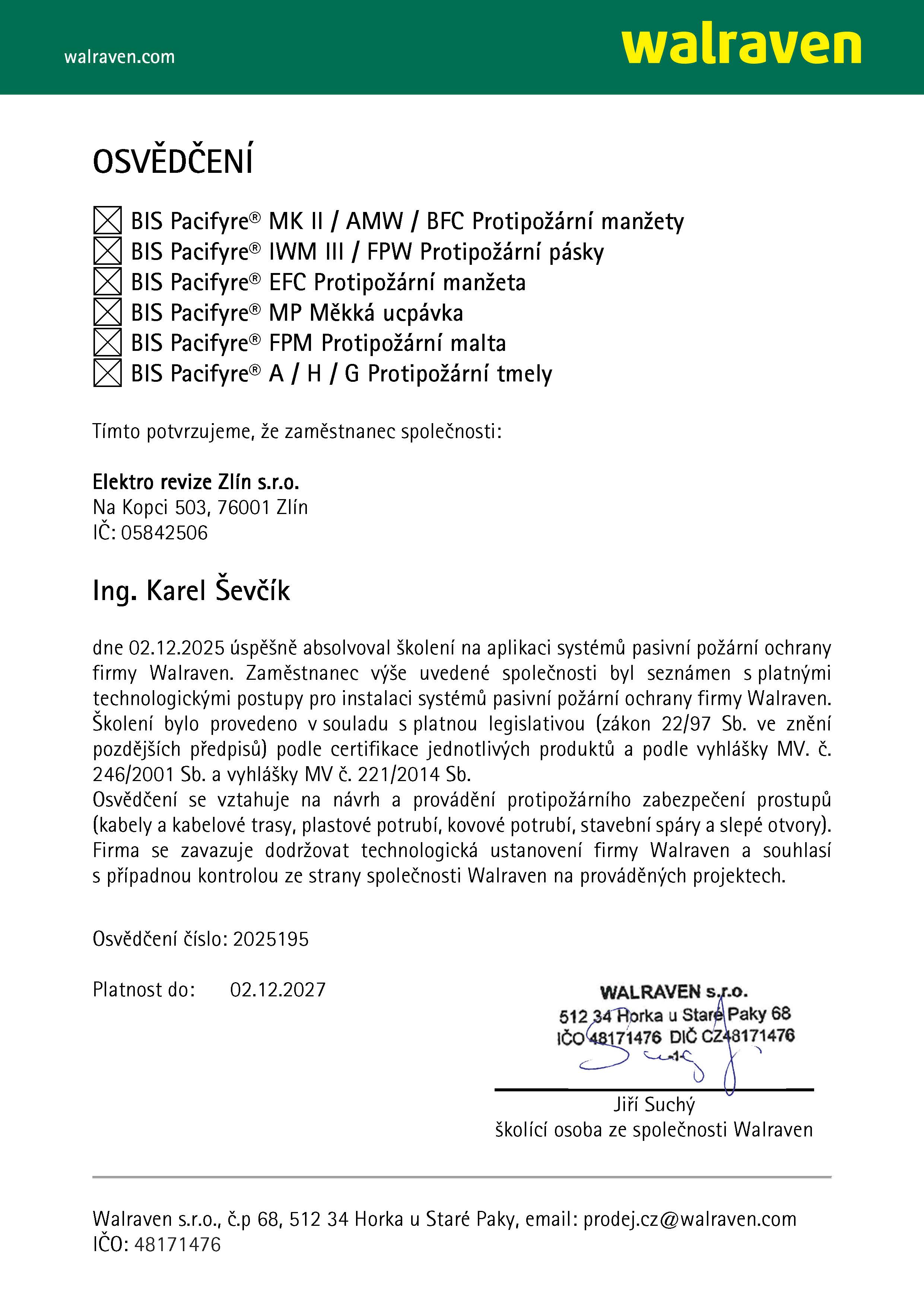 Školení na protipožární ucpávky HILTI a WALRAVEN